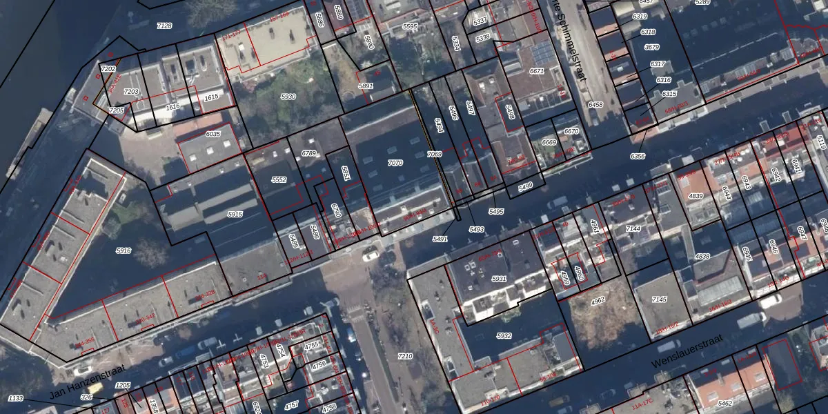Het adres is gelegen op perceel 7070 in de sectie T en de kadastrale gemeente Amsterdam. De kadastrale aanduiding is aldus ASD16-T-7070. De oppervlakte van het perceel is 560 m². Dat is groter dan gemiddeld in Amsterdam, waar de gemiddelde perceeloppervlakte op 245,33 m² ligt. Het grootste perceel in de kadastrale gemeente is 3,3 ha. Het kleinste perceel heeft een oppervlakte van 0 m². Op het perceel zijn 14 adressen aanwezig. De huidige grenzen van het perceel zijn digitaal in de Basisregistratie Kadaster (BRK) geregistreerd op 17-03-2015.