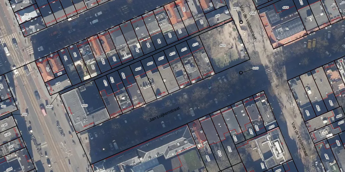 Het perceel waarop het adres ligt is ASD14-R-4627. De afkorting 'ASD14' staat voor kadastrale gemeente Amsterdam. Het perceel is kleiner dan gemiddeld in Amsterdam. Het perceel is 177 m² groot, terwijl het gemiddelde ligt op 354,38 m². Het kleinste perceel in de kadastrale gemeente is 0 m² groot. De grootste perceeloppervlakte is 9,9 ha. Op het perceel zijn 10 adressen aanwezig. In de Basisregistratie Kadaster (BRK) werden de grenzen van het perceel geregistreerd op 09-01-2007.