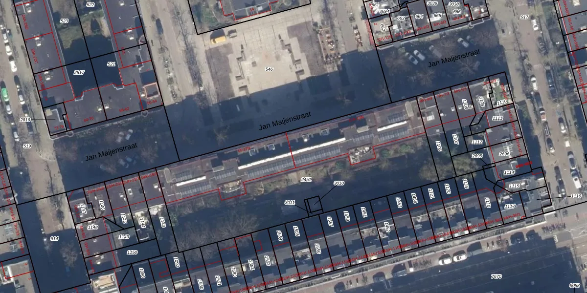 Het perceel waarop Jan Maijenstraat 13-K staat heeft een oppervlakte van 2730 m². Dit is een zeer groot perceel. De perceeloppervlakte wordt geregistreerd door het Kadaster. Gedetailleerde informatie over de maten van dit perceel kunt u vinden in het rapport Kadastrale kaart met maatvoering van Jan Maijenstraat 13-K.