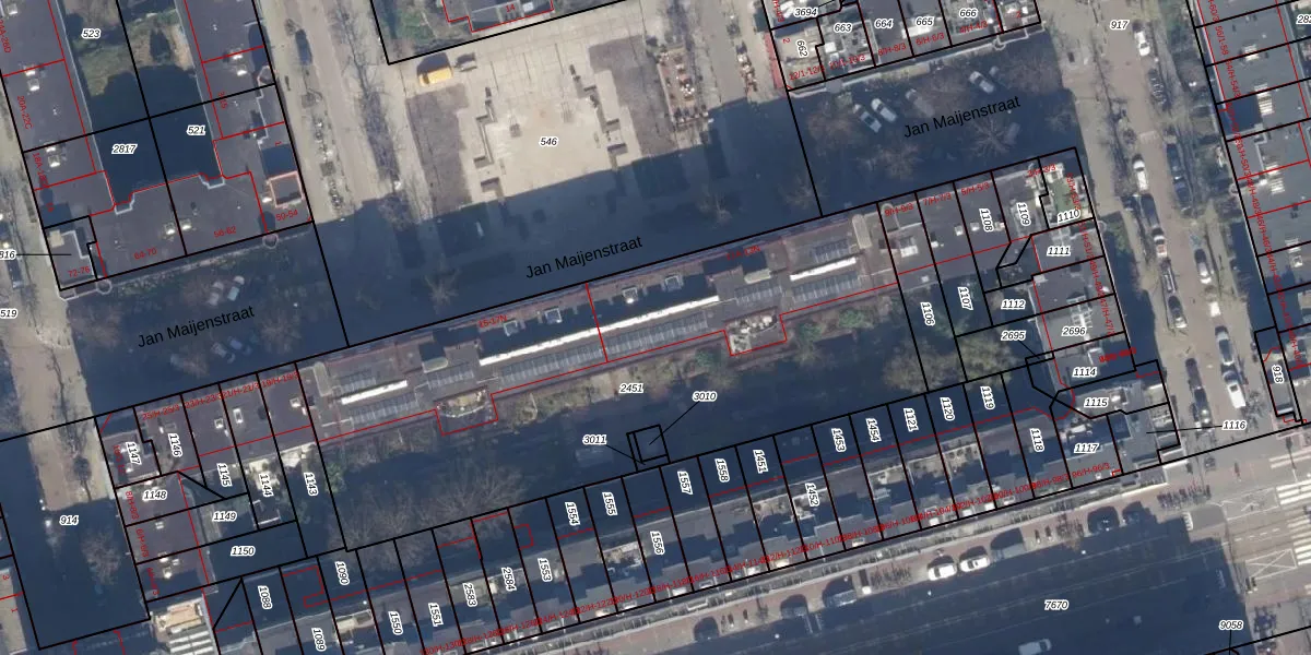 Het perceel waarop Jan Maijenstraat 13-L staat heeft een oppervlakte van 2730 m². Dit is een zeer groot perceel. De perceeloppervlakte wordt geregistreerd door het Kadaster. Gedetailleerde informatie over de maten van dit perceel kunt u vinden in het rapport Kadastrale kaart met maatvoering van Jan Maijenstraat 13-L.