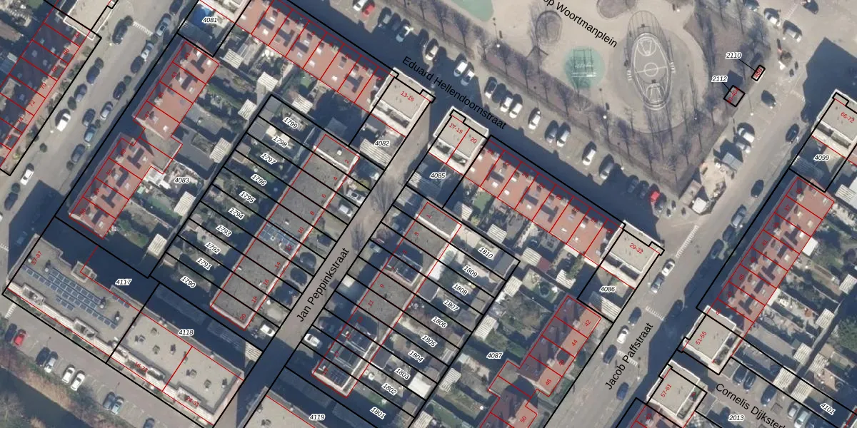 Gebruik de zoekbalk of klik op een perceel voor informatie over de adressen binnen dit perceel.