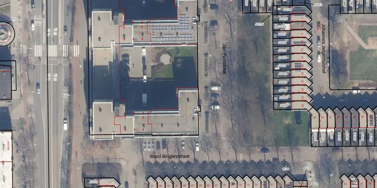 Het perceel waarop Jan Puntstraat 26 staat heeft een oppervlakte van 9763 m². Dit is een zeer groot perceel. De perceeloppervlakte wordt geregistreerd door het Kadaster. Gedetailleerde informatie over de maten van dit perceel kunt u vinden in het rapport Kadastrale kaart met maatvoering van Jan Puntstraat 26.