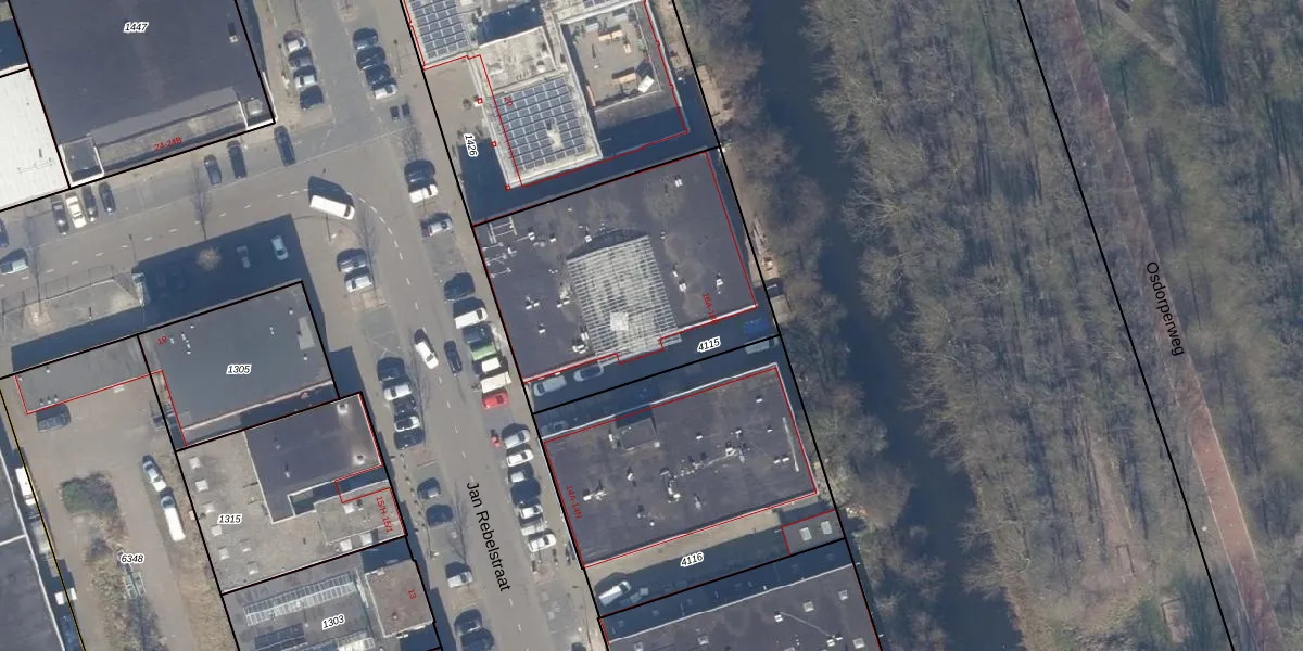 Het perceel waarop Jan Rebelstraat 16-C staat heeft een oppervlakte van 1217 m². Dit is een zeer groot perceel. De perceeloppervlakte wordt geregistreerd door het Kadaster. Gedetailleerde informatie over de maten van dit perceel kunt u vinden in het rapport Kadastrale kaart met maatvoering van Jan Rebelstraat 16-C.