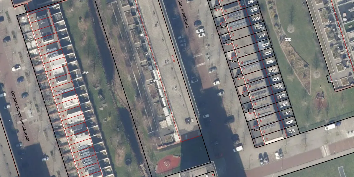 Het perceel waarop Jan Smitstraat 158 staat heeft een oppervlakte van 3855 m². Dit is een zeer groot perceel. De perceeloppervlakte wordt geregistreerd door het Kadaster. Gedetailleerde informatie over de maten van dit perceel kunt u vinden in het rapport Kadastrale kaart met maatvoering van Jan Smitstraat 158.