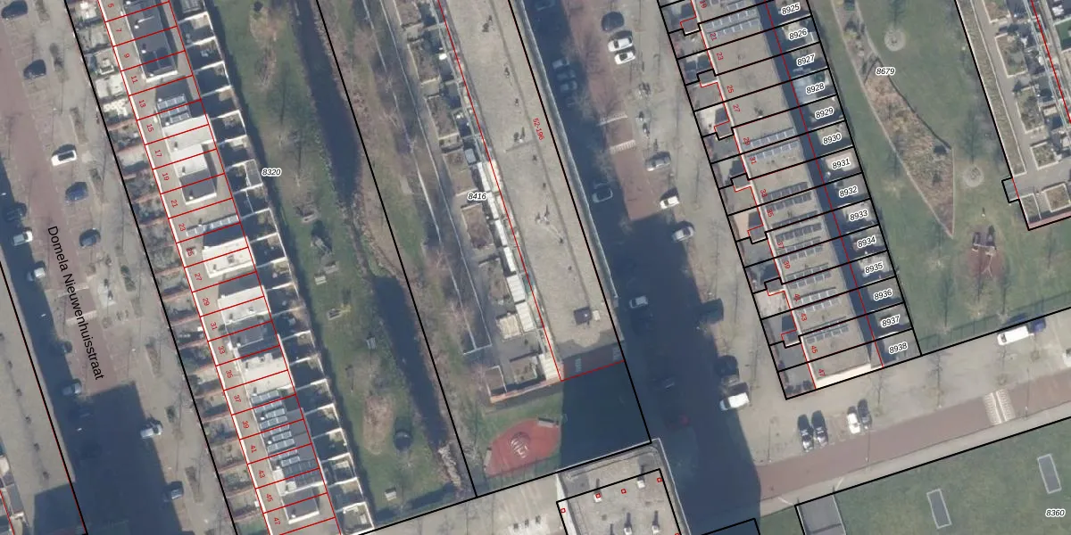Het adres ligt op het perceel STN02-E-8416, dat zich in de kadastrale gemeente Sloten Noord-Holland bevindt. Het perceel is met 3855 m² relatief groot. Het gemiddelde ligt in de kadastrale gemeente Sloten Noord-Holland op 2098,84 m². De grootste perceeloppervlakte in de kadastrale gemeente is 1,05 km². De kleinste oppervlakte bedraagt 0 m². Op het perceel zijn 57 adressen aanwezig. De huidige grenzen van het perceel zijn digitaal in de Basisregistratie Kadaster (BRK) geregistreerd op 15-12-2010.