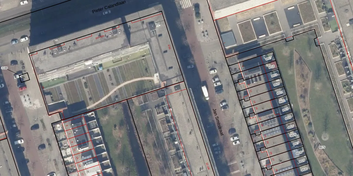 Het perceel waarop Jan Smitstraat 56 staat heeft een oppervlakte van 3855 m². Dit is een zeer groot perceel. De perceeloppervlakte wordt geregistreerd door het Kadaster. Gedetailleerde informatie over de maten van dit perceel kunt u vinden in het rapport Kadastrale kaart met maatvoering van Jan Smitstraat 56.