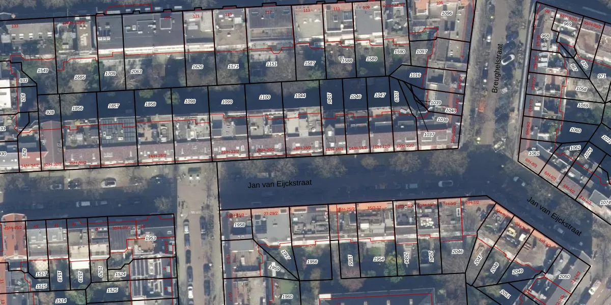 Het perceel waarop Jan van Eijckstraat 18-2 staat heeft een oppervlakte van 304 m². Dit is een groot perceel. De perceeloppervlakte wordt geregistreerd door het Kadaster. Gedetailleerde informatie over de maten van dit perceel kunt u vinden in het rapport Kadastrale kaart met maatvoering van Jan van Eijckstraat 18-2.