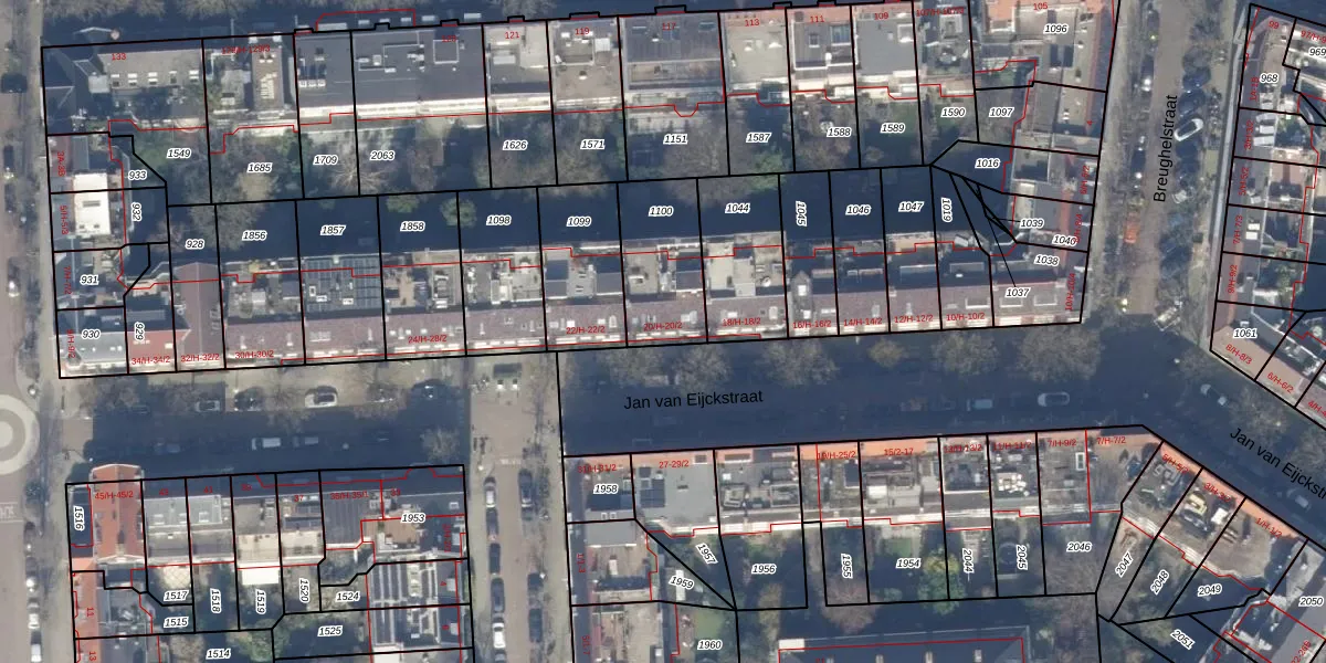 Het perceel waarop Jan van Eijckstraat 20-H staat heeft een oppervlakte van 303 m². Dit is een groot perceel. De perceeloppervlakte wordt geregistreerd door het Kadaster. Gedetailleerde informatie over de maten van dit perceel kunt u vinden in het rapport Kadastrale kaart met maatvoering van Jan van Eijckstraat 20-H.