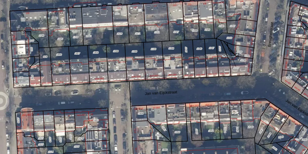 Het perceel waarop Jan van Eijckstraat 20-1 staat heeft een oppervlakte van 303 m². Dit is een groot perceel. De perceeloppervlakte wordt geregistreerd door het Kadaster. Gedetailleerde informatie over de maten van dit perceel kunt u vinden in het rapport Kadastrale kaart met maatvoering van Jan van Eijckstraat 20-1.