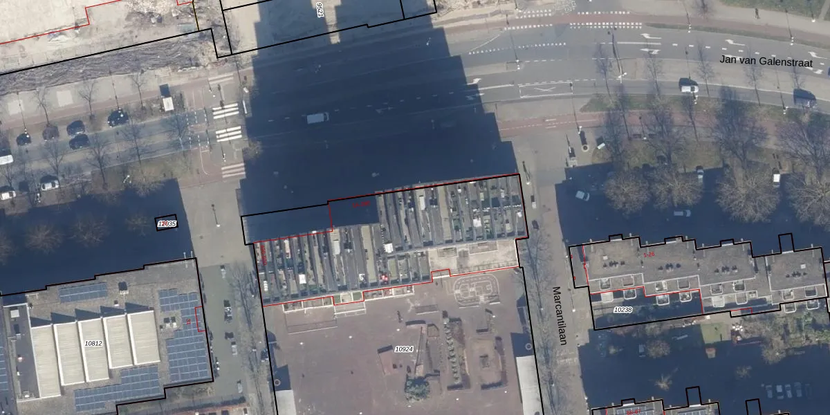 Het perceel waarop Jan van Galenstraat 13-C staat heeft een oppervlakte van 4896 m². Dit is een zeer groot perceel. De perceeloppervlakte wordt geregistreerd door het Kadaster. Gedetailleerde informatie over de maten van dit perceel kunt u vinden in het rapport Kadastrale kaart met maatvoering van Jan van Galenstraat 13-C.