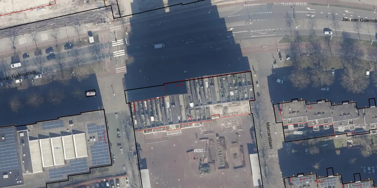 Het perceel waarop Jan van Galenstraat 7-F staat heeft een oppervlakte van 4896 m². Dit is een zeer groot perceel. De perceeloppervlakte wordt geregistreerd door het Kadaster. Gedetailleerde informatie over de maten van dit perceel kunt u vinden in het rapport Kadastrale kaart met maatvoering van Jan van Galenstraat 7-F.