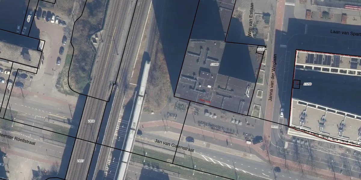 Het perceel waarop Jan van Galenstraat 710 staat heeft een oppervlakte van 2020 m². Dit is een zeer groot perceel. De perceeloppervlakte wordt geregistreerd door het Kadaster. Gedetailleerde informatie over de maten van dit perceel kunt u vinden in het rapport Kadastrale kaart met maatvoering van Jan van Galenstraat 710.