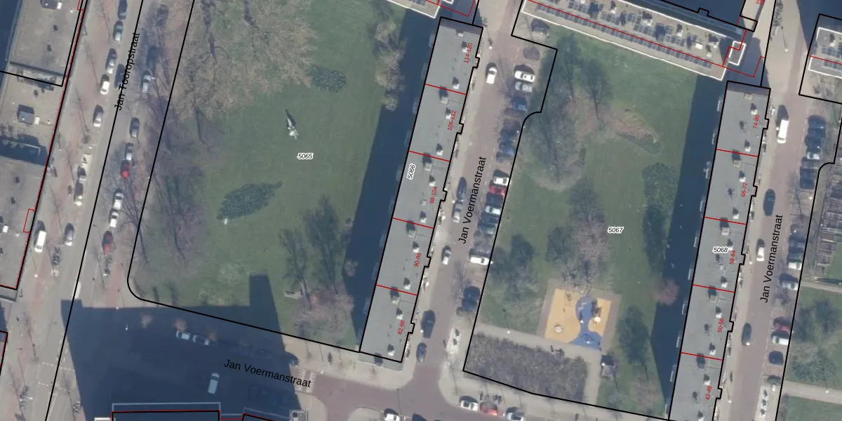 Het perceel waarop Jan Voermanstraat 100-1 staat heeft een oppervlakte van 848 m². Dit is een groot perceel. De perceeloppervlakte wordt geregistreerd door het Kadaster. Gedetailleerde informatie over de maten van dit perceel kunt u vinden in het rapport Kadastrale kaart met maatvoering van Jan Voermanstraat 100-1.