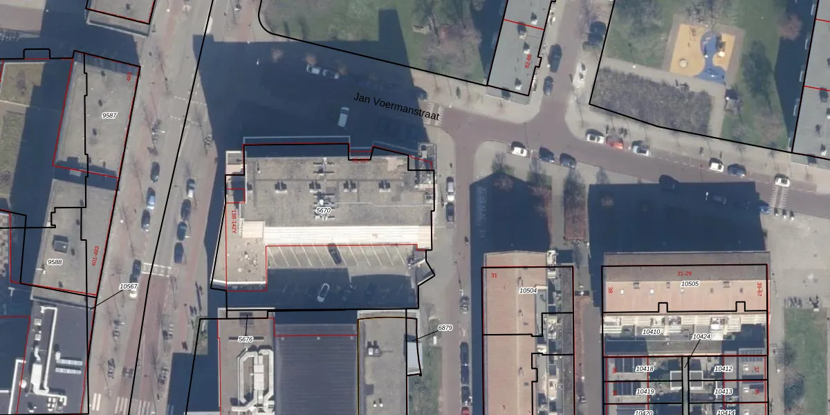 Het perceel waarop Jan Voermanstraat 105 staat heeft een oppervlakte van 1890 m². Dit is een zeer groot perceel. De perceeloppervlakte wordt geregistreerd door het Kadaster. Gedetailleerde informatie over de maten van dit perceel kunt u vinden in het rapport Kadastrale kaart met maatvoering van Jan Voermanstraat 105.