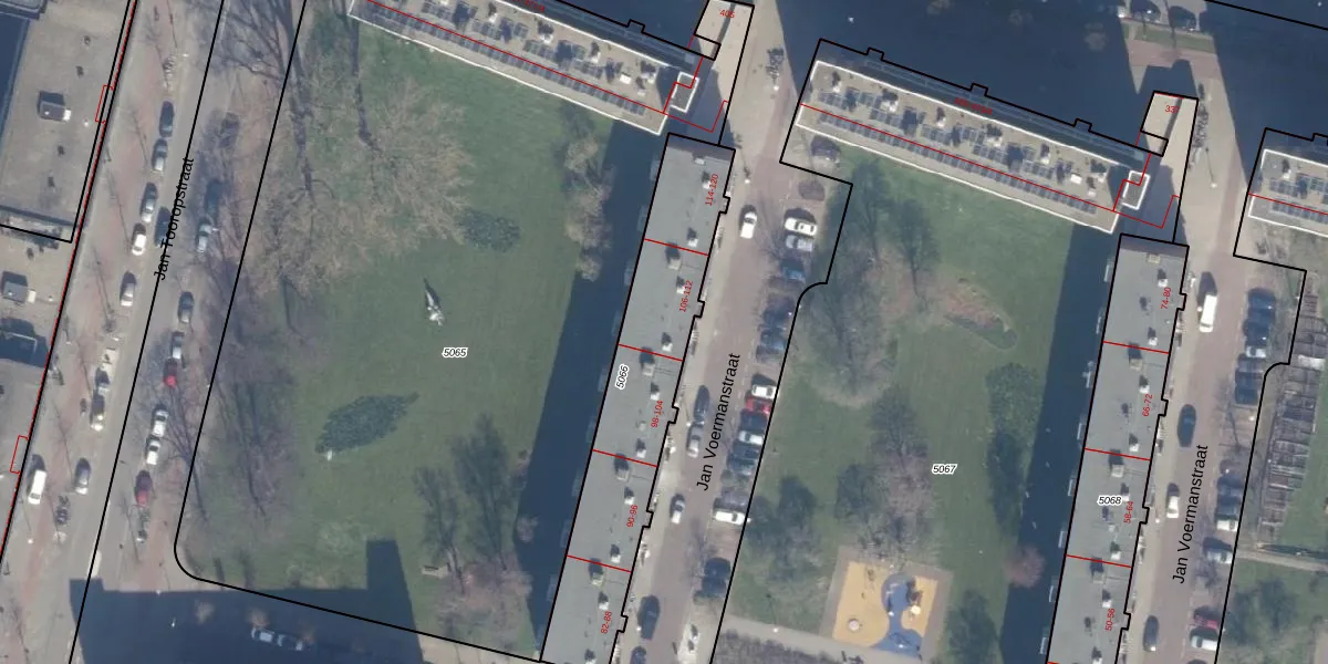 Het perceel waarop Jan Voermanstraat 108-1 staat heeft een oppervlakte van 848 m². Dit is een groot perceel. De perceeloppervlakte wordt geregistreerd door het Kadaster. Gedetailleerde informatie over de maten van dit perceel kunt u vinden in het rapport Kadastrale kaart met maatvoering van Jan Voermanstraat 108-1.