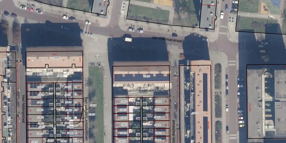 Het perceel waarop Jan Voermanstraat 11 staat heeft een oppervlakte van 870 m². Dit is een groot perceel. De perceeloppervlakte wordt geregistreerd door het Kadaster. Gedetailleerde informatie over de maten van dit perceel kunt u vinden in het rapport Kadastrale kaart met maatvoering van Jan Voermanstraat 11.