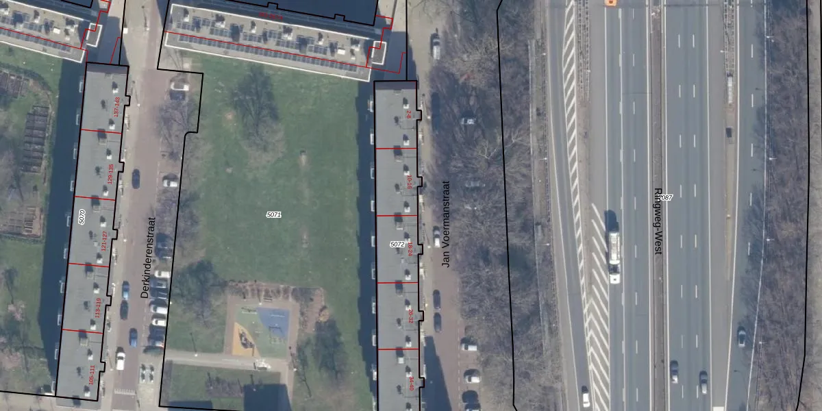 Het perceel waarop Jan Voermanstraat 16 staat heeft een oppervlakte van 848 m². Dit is een groot perceel. De perceeloppervlakte wordt geregistreerd door het Kadaster. Gedetailleerde informatie over de maten van dit perceel kunt u vinden in het rapport Kadastrale kaart met maatvoering van Jan Voermanstraat 16.