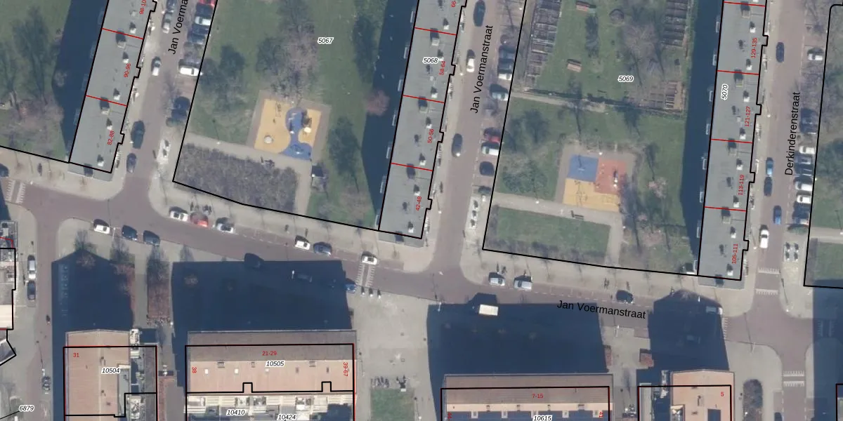 Het perceel waarop Jan Voermanstraat 44-2 staat heeft een oppervlakte van 848 m². Dit is een groot perceel. De perceeloppervlakte wordt geregistreerd door het Kadaster. Gedetailleerde informatie over de maten van dit perceel kunt u vinden in het rapport Kadastrale kaart met maatvoering van Jan Voermanstraat 44-2.