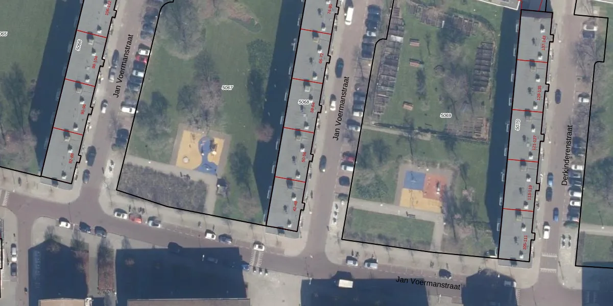 Het perceel waarop Jan Voermanstraat 54-3 staat heeft een oppervlakte van 848 m². Dit is een groot perceel. De perceeloppervlakte wordt geregistreerd door het Kadaster. Gedetailleerde informatie over de maten van dit perceel kunt u vinden in het rapport Kadastrale kaart met maatvoering van Jan Voermanstraat 54-3.