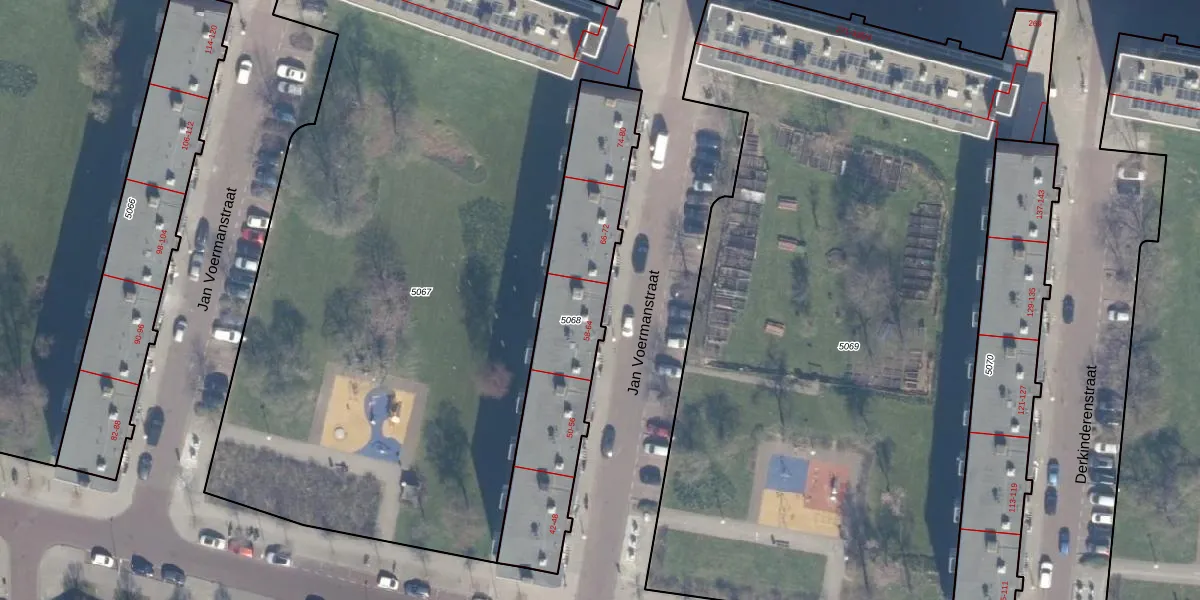 Het perceel waarop Jan Voermanstraat 64 staat heeft een oppervlakte van 848 m². Dit is een groot perceel. De perceeloppervlakte wordt geregistreerd door het Kadaster. Gedetailleerde informatie over de maten van dit perceel kunt u vinden in het rapport Kadastrale kaart met maatvoering van Jan Voermanstraat 64.