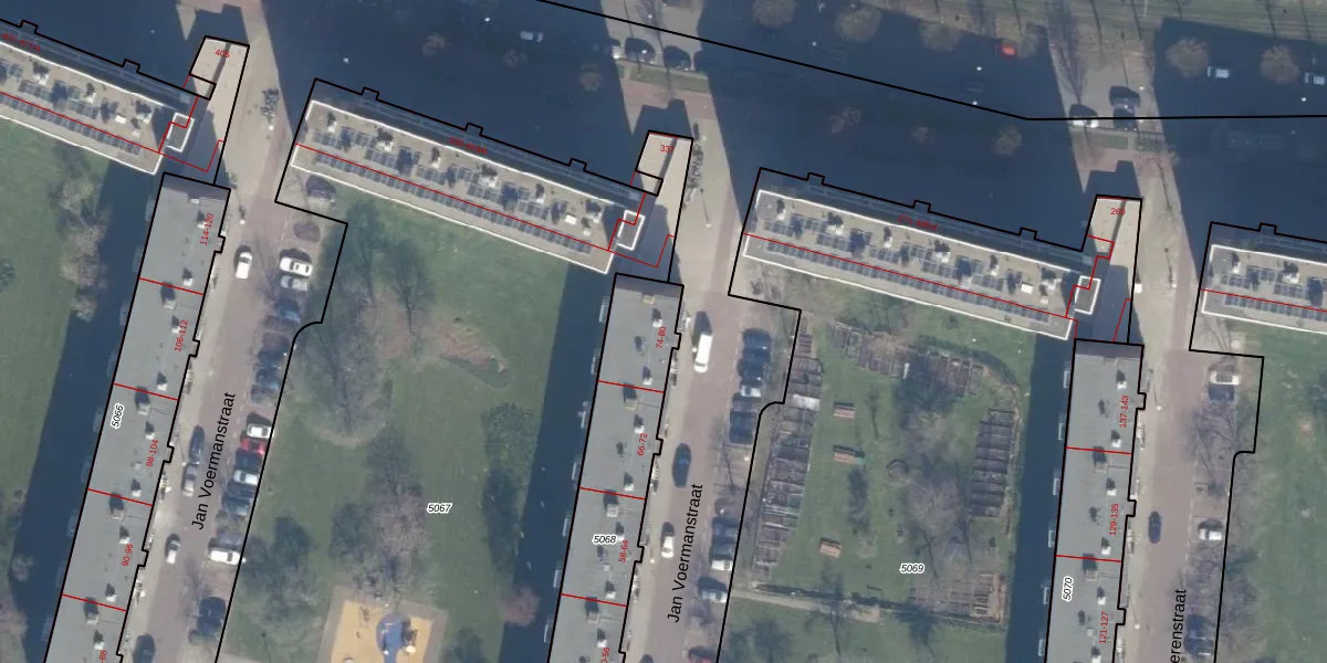 Het perceel waarop Jan Voermanstraat 78-H staat heeft een oppervlakte van 848 m². Dit is een groot perceel. De perceeloppervlakte wordt geregistreerd door het Kadaster. Gedetailleerde informatie over de maten van dit perceel kunt u vinden in het rapport Kadastrale kaart met maatvoering van Jan Voermanstraat 78-H.