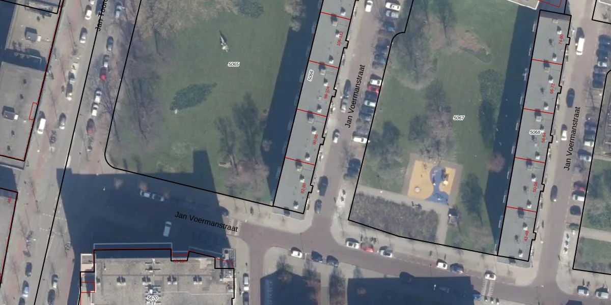 Het perceel waarop Jan Voermanstraat 92-H staat heeft een oppervlakte van 848 m². Dit is een groot perceel. De perceeloppervlakte wordt geregistreerd door het Kadaster. Gedetailleerde informatie over de maten van dit perceel kunt u vinden in het rapport Kadastrale kaart met maatvoering van Jan Voermanstraat 92-H.