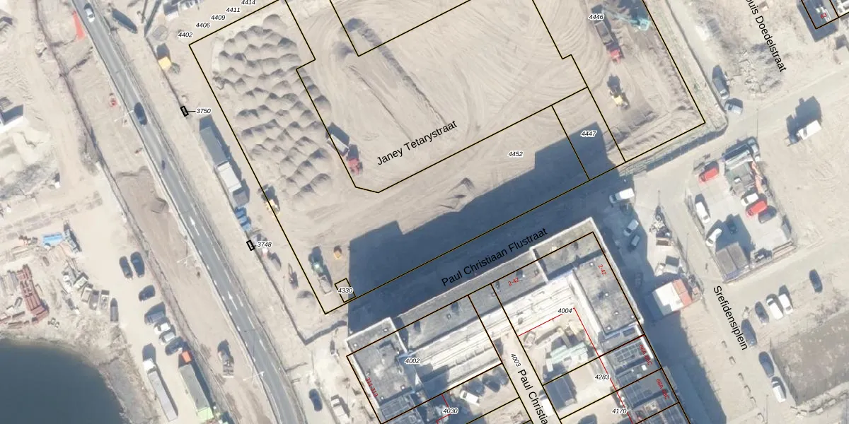 Janey Tetarystraat 100 is gelegen op kadastraal perceel ASD41AU4452. Deze kadastrale aanduiding is uniek en wordt gebruikt door het Kadaster om eigendomsrechten en andere zakelijke rechten vast te leggen. Het perceel maakt onderdeel uit van de kadastrale gemeente Amsterdam.