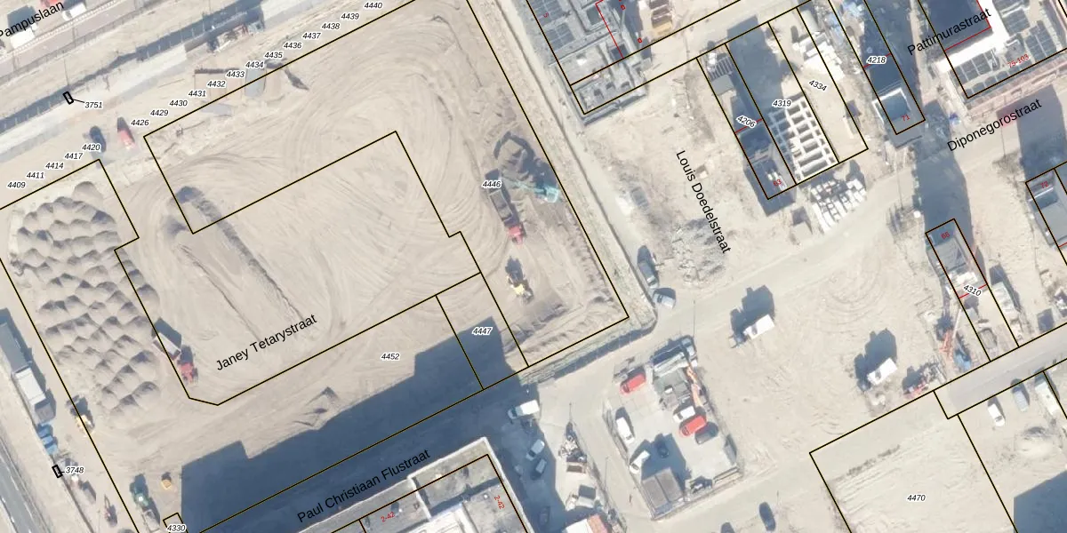 Het perceel waarop Janey Tetarystraat 92 staat heeft een oppervlakte van 2449 m². Dit is een zeer groot perceel. De perceeloppervlakte wordt geregistreerd door het Kadaster. Gedetailleerde informatie over de maten van dit perceel kunt u vinden in het rapport Kadastrale kaart met maatvoering van Janey Tetarystraat 92.