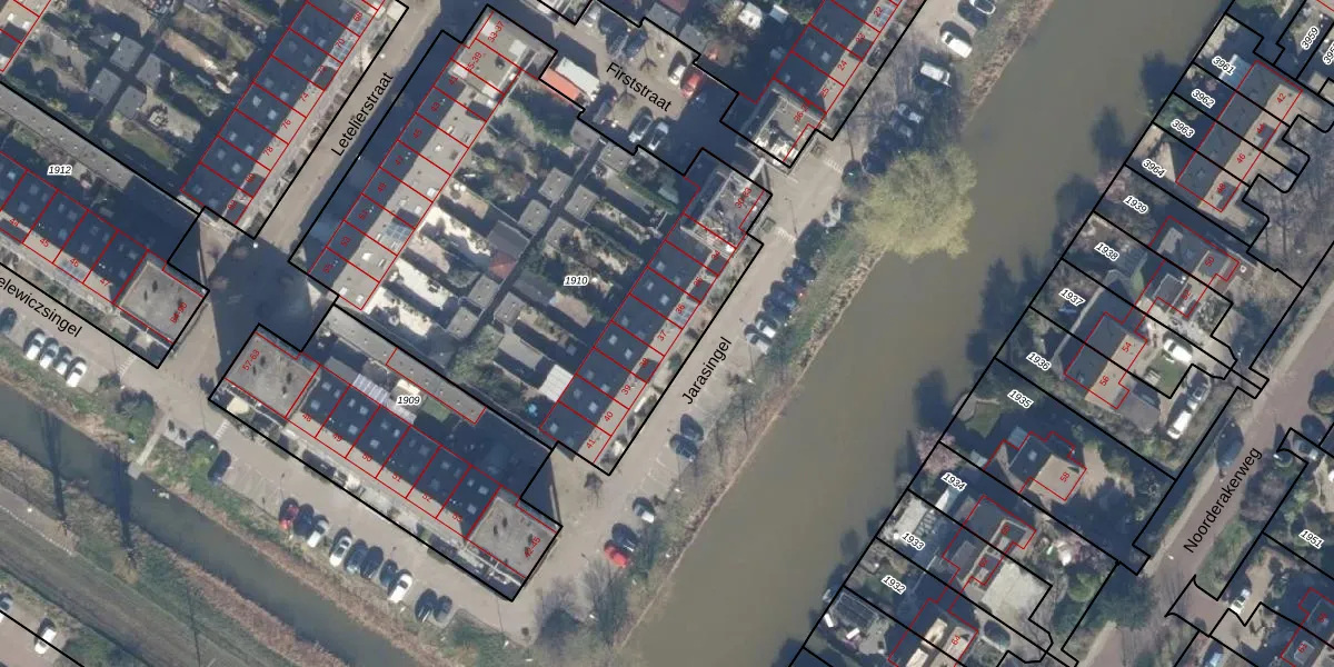 Jarasingel 37 is gelegen op kadastraal perceel STN02G1910. Deze kadastrale aanduiding is uniek en wordt gebruikt door het Kadaster om eigendomsrechten en andere zakelijke rechten vast te leggen. Het perceel maakt onderdeel uit van de kadastrale gemeente Sloten Noord-Holland.