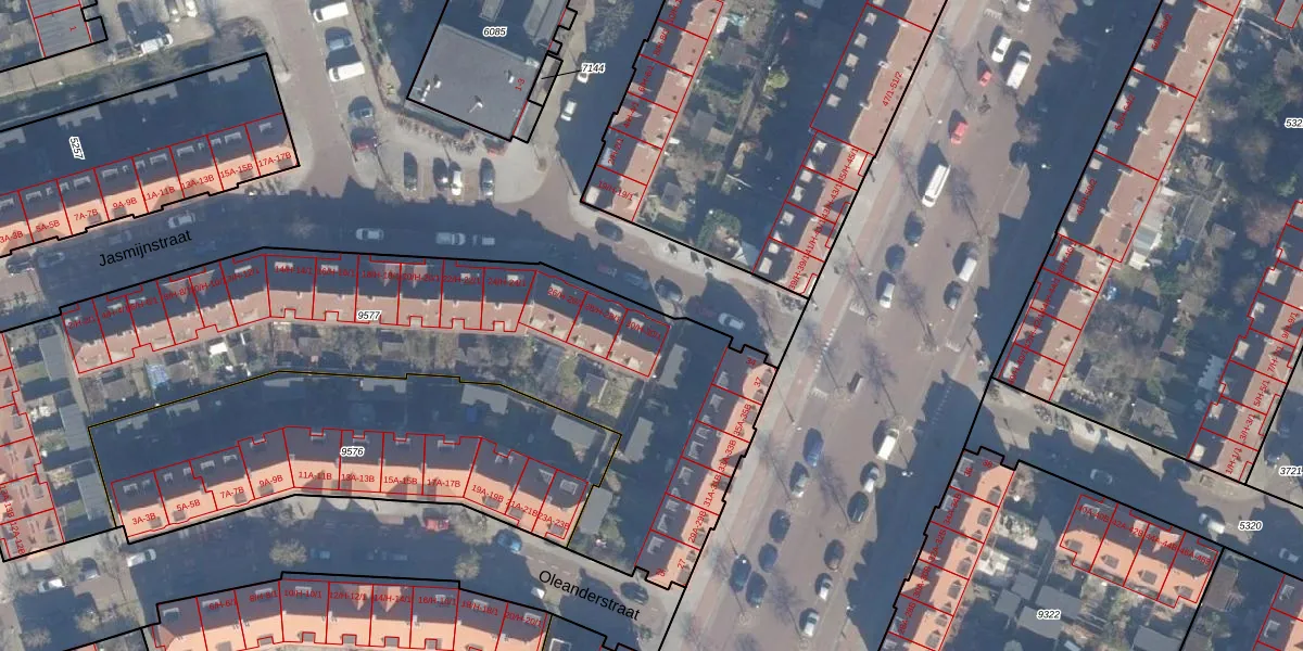 Het perceel waarop Jasmijnstraat 30-1 staat heeft een oppervlakte van 3071 m². Dit is een zeer groot perceel. De perceeloppervlakte wordt geregistreerd door het Kadaster. Gedetailleerde informatie over de maten van dit perceel kunt u vinden in het rapport Kadastrale kaart met maatvoering van Jasmijnstraat 30-1.