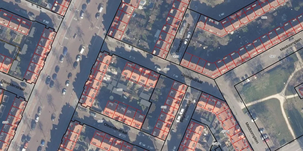 Het perceel waarop Jasmijnstraat 46-A staat heeft een oppervlakte van 1715 m². Dit is een zeer groot perceel. De perceeloppervlakte wordt geregistreerd door het Kadaster. Gedetailleerde informatie over de maten van dit perceel kunt u vinden in het rapport Kadastrale kaart met maatvoering van Jasmijnstraat 46-A.