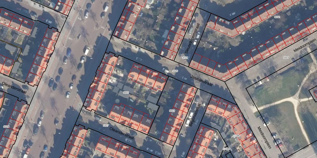 Het perceel waarop Jasmijnstraat 46-B staat heeft een oppervlakte van 1715 m². Dit is een zeer groot perceel. De perceeloppervlakte wordt geregistreerd door het Kadaster. Gedetailleerde informatie over de maten van dit perceel kunt u vinden in het rapport Kadastrale kaart met maatvoering van Jasmijnstraat 46-B.