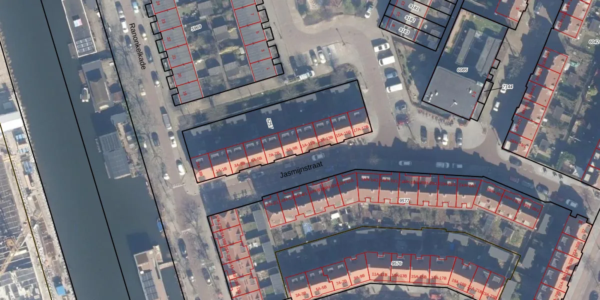 Jasmijnstraat 9-B is gelegen op kadastraal perceel ASD07K5257. Deze kadastrale aanduiding is uniek en wordt gebruikt door het Kadaster om eigendomsrechten en andere zakelijke rechten vast te leggen. Het perceel maakt onderdeel uit van de kadastrale gemeente Amsterdam.