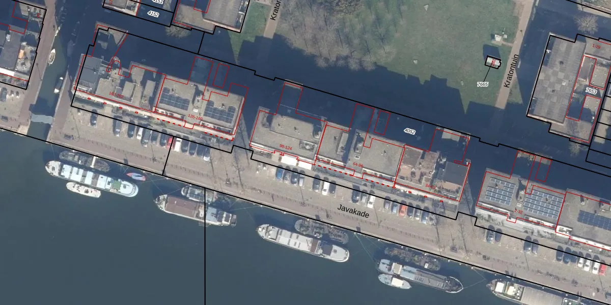 Het perceel waarop Javakade 124 staat heeft een oppervlakte van 5268 m². Dit is een zeer groot perceel. De perceeloppervlakte wordt geregistreerd door het Kadaster. Gedetailleerde informatie over de maten van dit perceel kunt u vinden in het rapport Kadastrale kaart met maatvoering van Javakade 124.