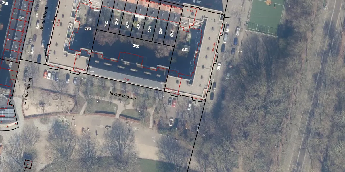 Javaplantsoen 107 is gelegen op kadastraal perceel ASD19W7646. Deze kadastrale aanduiding is uniek en wordt gebruikt door het Kadaster om eigendomsrechten en andere zakelijke rechten vast te leggen. Het perceel maakt onderdeel uit van de kadastrale gemeente Amsterdam.