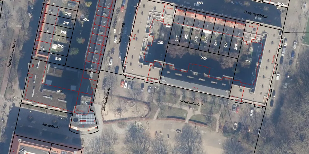 Javaplantsoen 15-A is gelegen op kadastraal perceel ASD19W7645. Deze kadastrale aanduiding is uniek en wordt gebruikt door het Kadaster om eigendomsrechten en andere zakelijke rechten vast te leggen. Het perceel maakt onderdeel uit van de kadastrale gemeente Amsterdam.