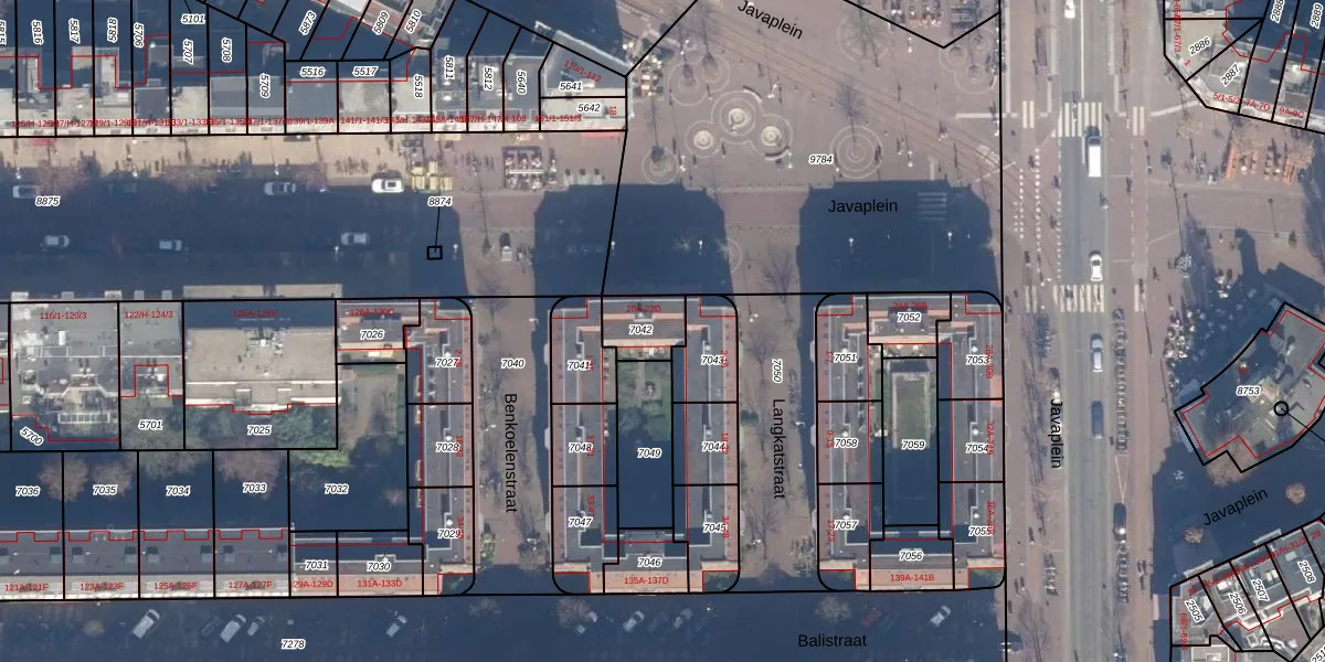 Het perceel waarop Javaplein 22-C staat heeft een oppervlakte van 116 m². Dit is een middelgroot perceel. De perceeloppervlakte wordt geregistreerd door het Kadaster. Gedetailleerde informatie over de maten van dit perceel kunt u vinden in het rapport Kadastrale kaart met maatvoering van Javaplein 22-C.