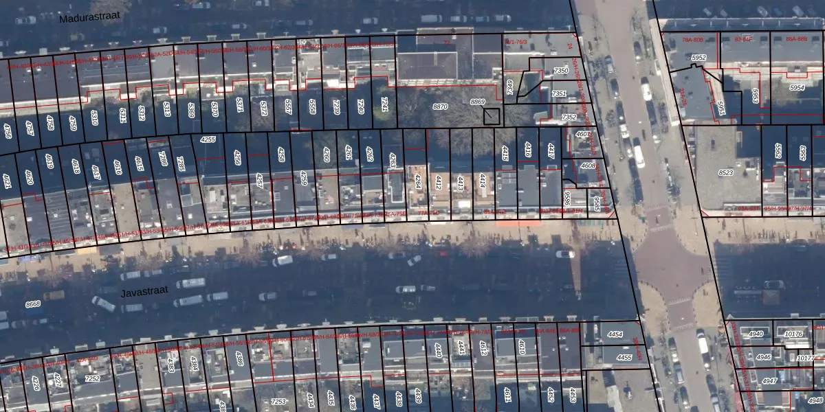Het perceel waarop Javastraat 77-A staat heeft een oppervlakte van 123 m². Dit is een middelgroot perceel. De perceeloppervlakte wordt geregistreerd door het Kadaster. Gedetailleerde informatie over de maten van dit perceel kunt u vinden in het rapport Kadastrale kaart met maatvoering van Javastraat 77-A.