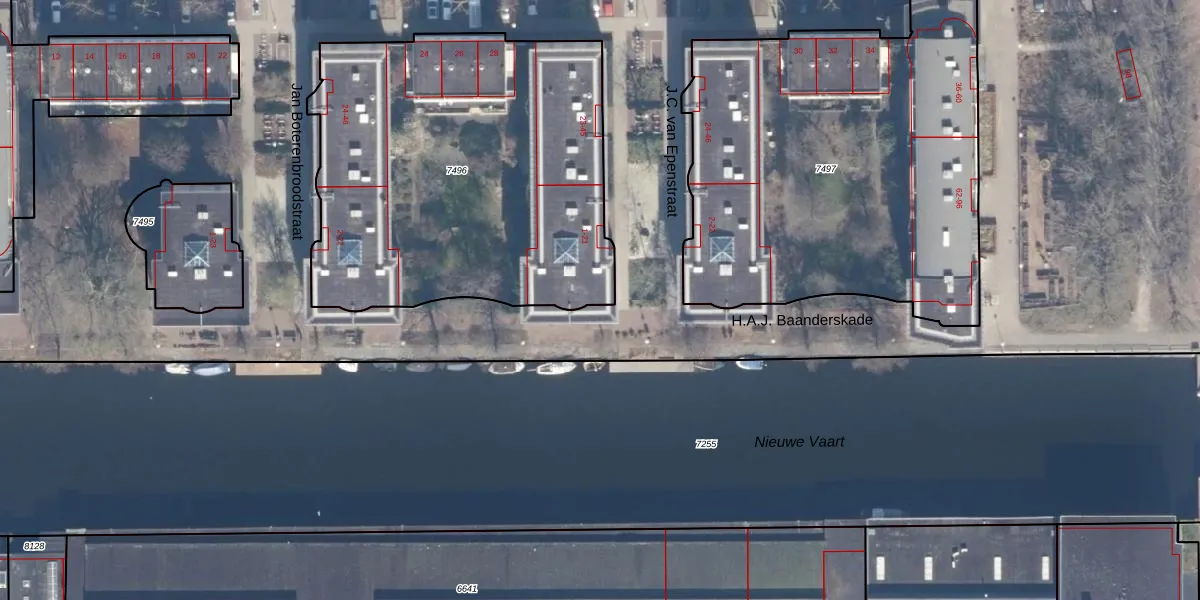 Het adres is gelegen op perceel 7496 in de sectie A en de kadastrale gemeente Amsterdam. De kadastrale aanduiding is aldus ASD02-A-7496. Het perceel is kleiner dan gemiddeld in Amsterdam. Het perceel is 2137 m² groot, terwijl het gemiddelde ligt op 2763,93 m². Het kleinste perceel in de kadastrale gemeente is 0 m² groot. De grootste perceeloppervlakte is 14,3 ha. Op het perceel zijn 49 adressen aanwezig. In de Basisregistratie Kadaster (BRK) werden de grenzen van het perceel geregistreerd op 24-10-2007.