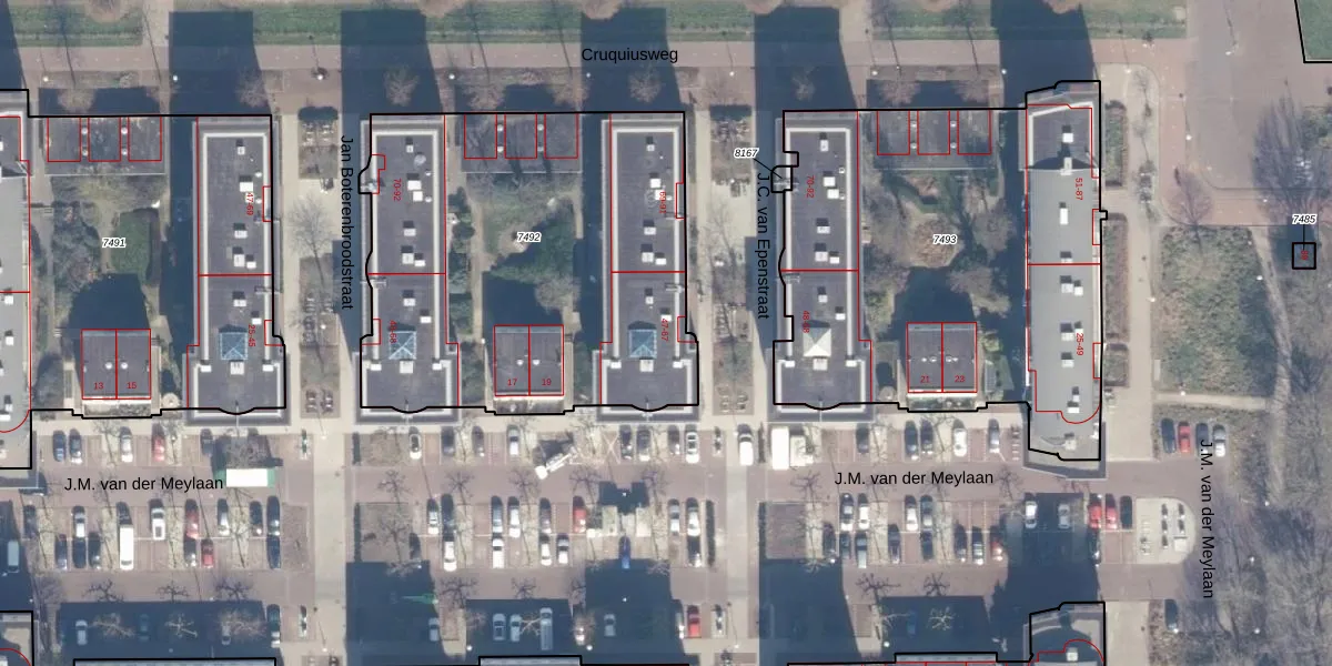 Het perceel waarop J.C. van Epenstraat 59 staat heeft een oppervlakte van 2148 m². Dit is een zeer groot perceel. De perceeloppervlakte wordt geregistreerd door het Kadaster. Gedetailleerde informatie over de maten van dit perceel kunt u vinden in het rapport Kadastrale kaart met maatvoering van J.C. van Epenstraat 59.