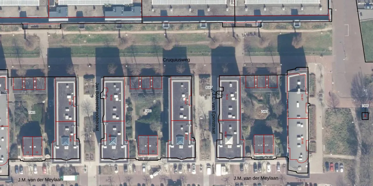 Het perceel waarop J.C. van Epenstraat 87 staat heeft een oppervlakte van 2148 m². Dit is een zeer groot perceel. De perceeloppervlakte wordt geregistreerd door het Kadaster. Gedetailleerde informatie over de maten van dit perceel kunt u vinden in het rapport Kadastrale kaart met maatvoering van J.C. van Epenstraat 87.