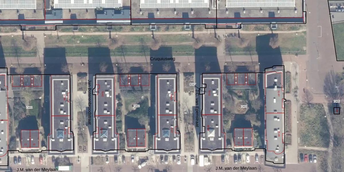 Het perceel waarop J.C. van Epenstraat 89 staat heeft een oppervlakte van 2148 m². Dit is een zeer groot perceel. De perceeloppervlakte wordt geregistreerd door het Kadaster. Gedetailleerde informatie over de maten van dit perceel kunt u vinden in het rapport Kadastrale kaart met maatvoering van J.C. van Epenstraat 89.