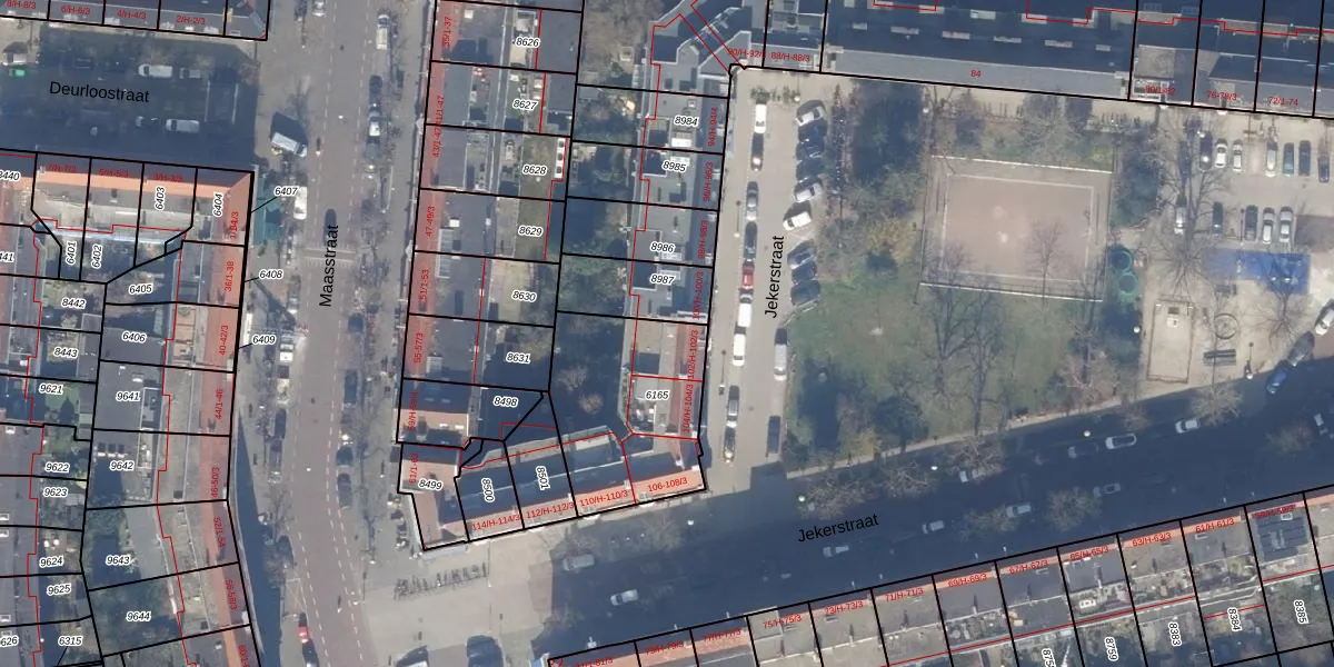 Het perceel waarop Jekerstraat 102-2 staat heeft een oppervlakte van 593 m². Dit is een groot perceel. De perceeloppervlakte wordt geregistreerd door het Kadaster. Gedetailleerde informatie over de maten van dit perceel kunt u vinden in het rapport Kadastrale kaart met maatvoering van Jekerstraat 102-2.