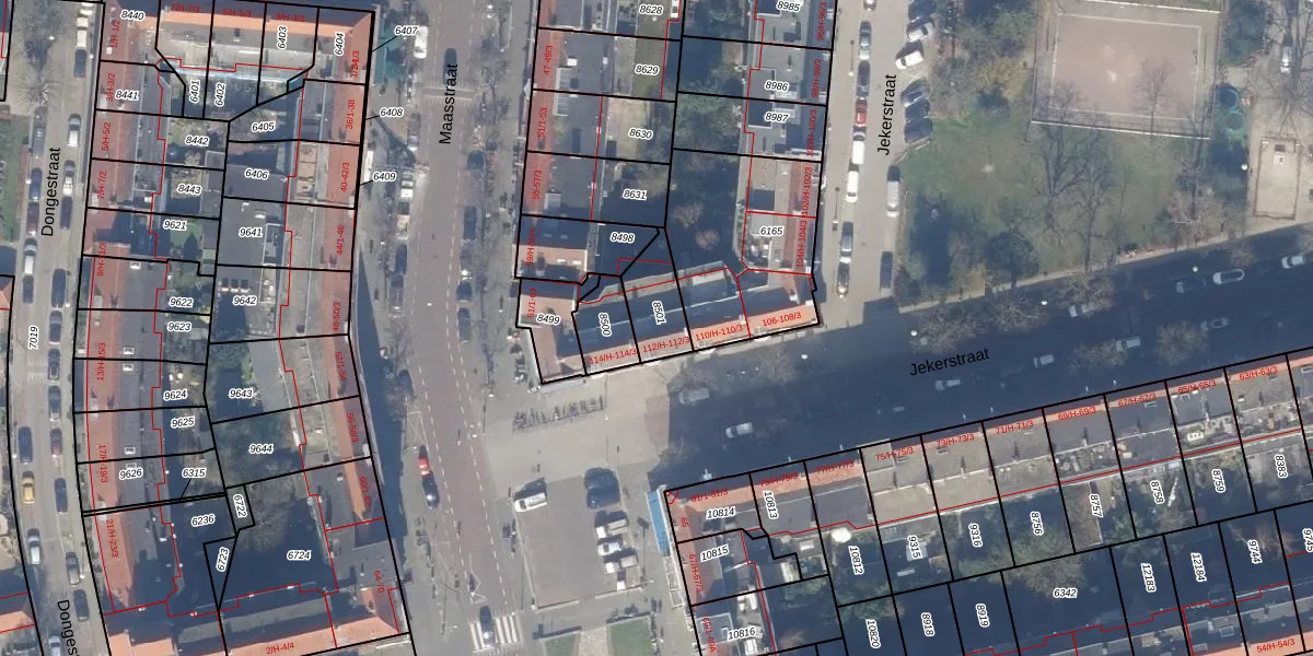 Jekerstraat 112-1 is gelegen op kadastraal perceel ASD18V8501. Deze kadastrale aanduiding is uniek en wordt gebruikt door het Kadaster om eigendomsrechten en andere zakelijke rechten vast te leggen. Het perceel maakt onderdeel uit van de kadastrale gemeente Amsterdam.