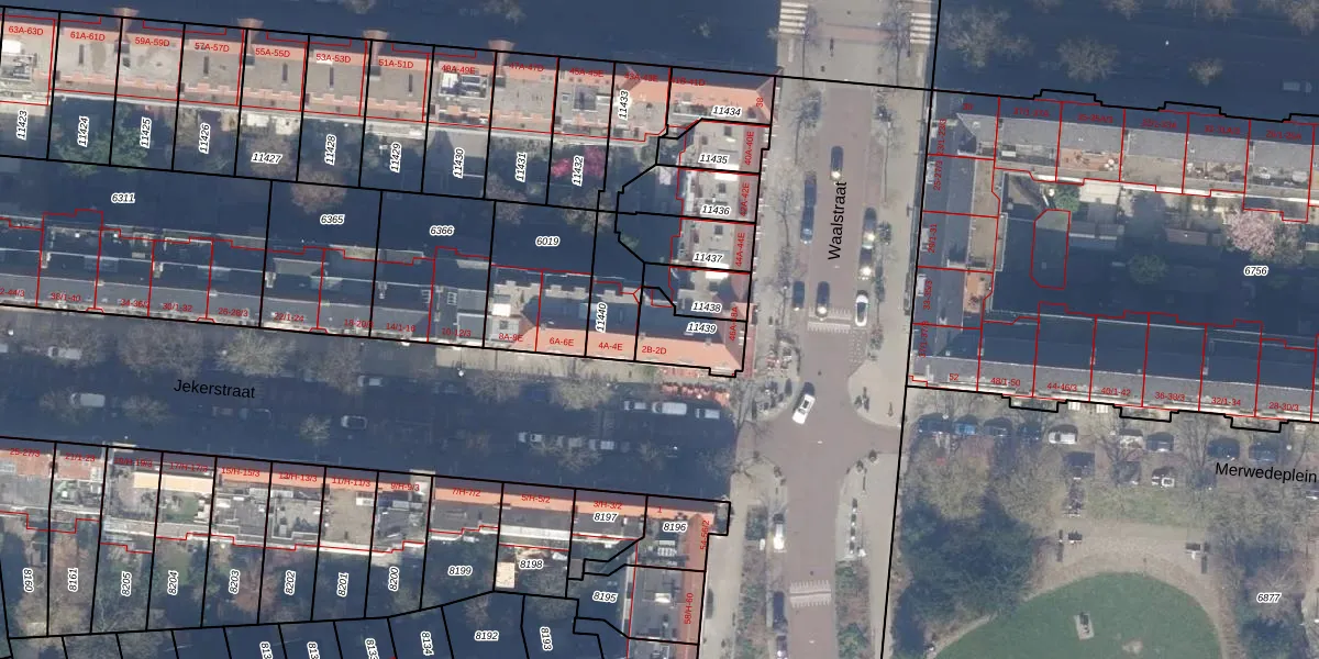 Jekerstraat 2-C is gelegen op kadastraal perceel ASD18V11439. Deze kadastrale aanduiding is uniek en wordt gebruikt door het Kadaster om eigendomsrechten en andere zakelijke rechten vast te leggen. Het perceel maakt onderdeel uit van de kadastrale gemeente Amsterdam.