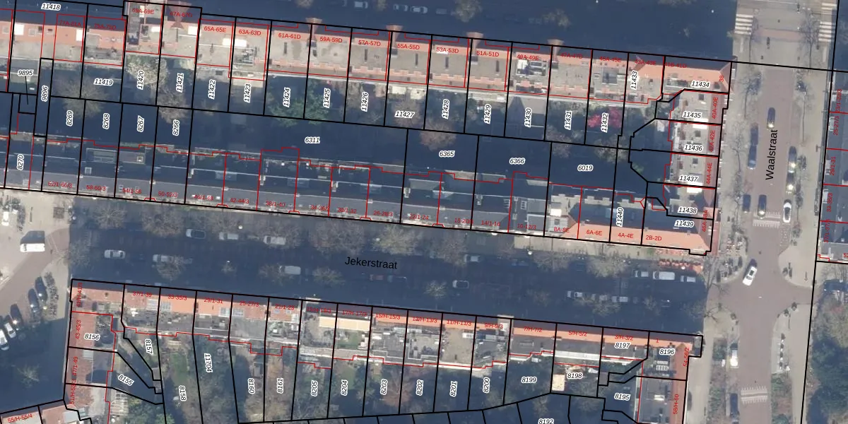 Jekerstraat 22-1 is gelegen op kadastraal perceel ASD18V6365. Deze kadastrale aanduiding is uniek en wordt gebruikt door het Kadaster om eigendomsrechten en andere zakelijke rechten vast te leggen. Het perceel maakt onderdeel uit van de kadastrale gemeente Amsterdam.
