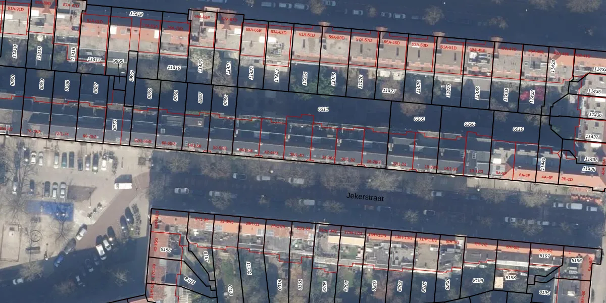 Jekerstraat 38-1 is gelegen op kadastraal perceel ASD18V6311. Deze kadastrale aanduiding is uniek en wordt gebruikt door het Kadaster om eigendomsrechten en andere zakelijke rechten vast te leggen. Het perceel maakt onderdeel uit van de kadastrale gemeente Amsterdam.