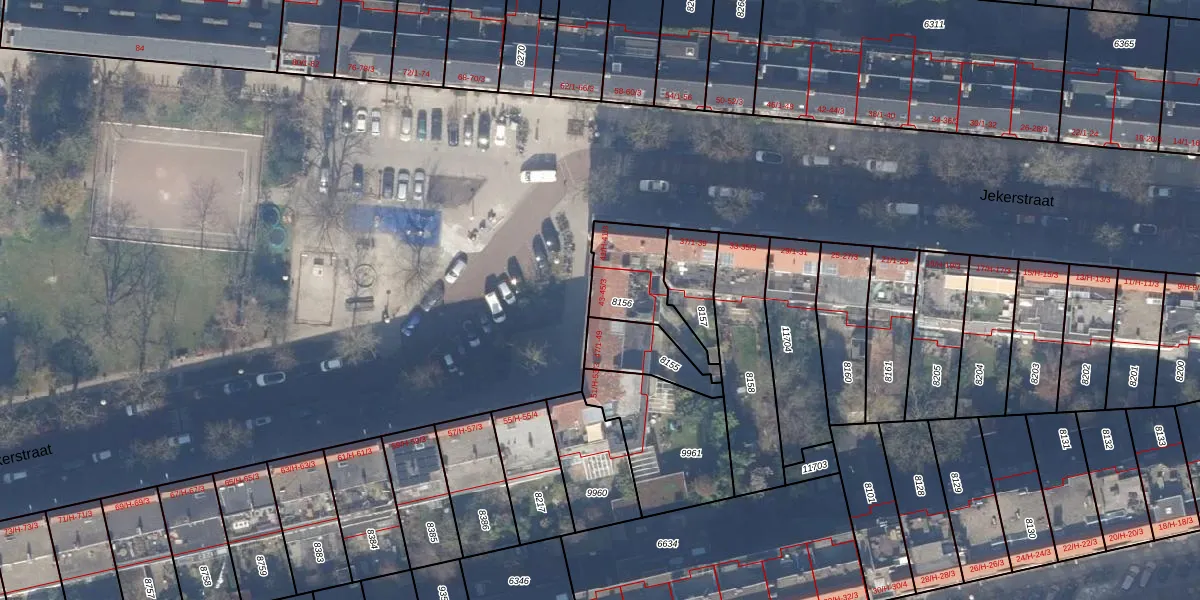 Jekerstraat 45-1 is gelegen op kadastraal perceel ASD18V8156. Deze kadastrale aanduiding is uniek en wordt gebruikt door het Kadaster om eigendomsrechten en andere zakelijke rechten vast te leggen. Het perceel maakt onderdeel uit van de kadastrale gemeente Amsterdam.