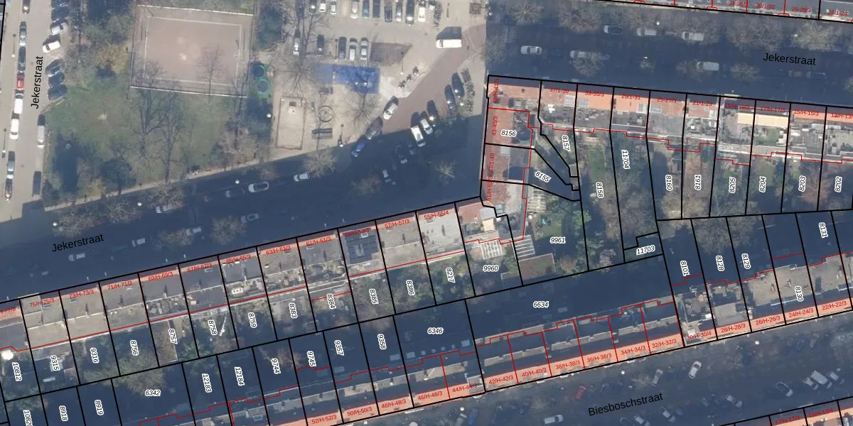 Het perceel waarop Jekerstraat 55-4 staat heeft een oppervlakte van 215 m². Dit is een middelgroot perceel. De perceeloppervlakte wordt geregistreerd door het Kadaster. Gedetailleerde informatie over de maten van dit perceel kunt u vinden in het rapport Kadastrale kaart met maatvoering van Jekerstraat 55-4.