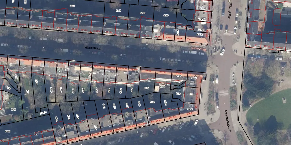 Het perceel waarop Jekerstraat 7-H staat heeft een oppervlakte van 202 m². Dit is een middelgroot perceel. De perceeloppervlakte wordt geregistreerd door het Kadaster. Gedetailleerde informatie over de maten van dit perceel kunt u vinden in het rapport Kadastrale kaart met maatvoering van Jekerstraat 7-H.
